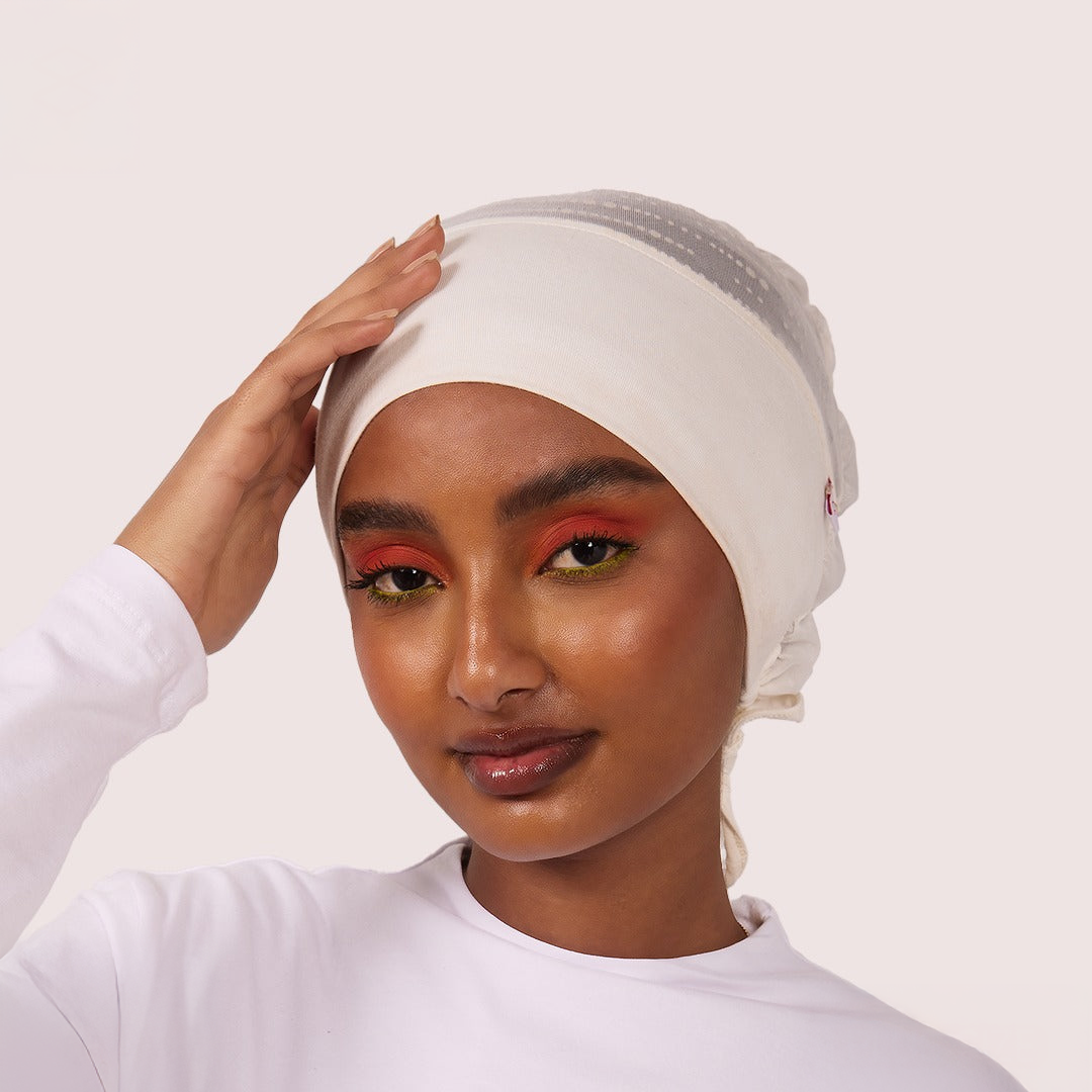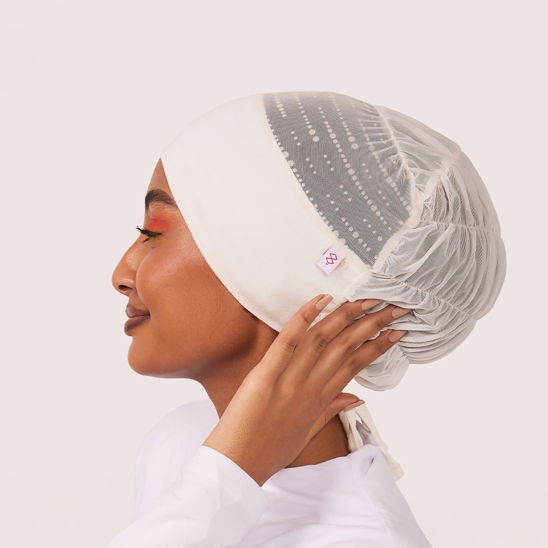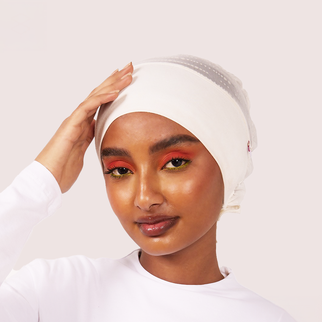 - طبقتين في الجزء الامامي وتغطية كاملة من الخلف لثبات اكتر تحت الايشارب